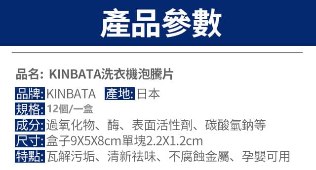 25分鐘前【日本進口】去污清潔泡騰片,適合清潔洗衣機水槽馬桶多種用途!無效全額退款, 固保三年! - 日本KINBATA洗衣機泡騰片 入6組60個 NT$1299