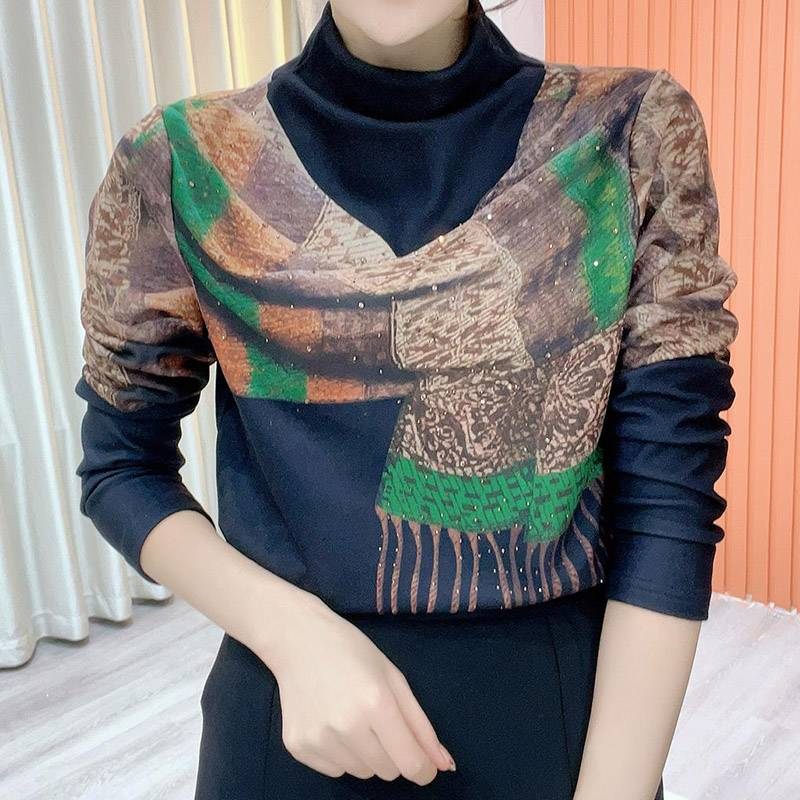 7分鐘前任選買1送1,設計感印花圍巾打底衫,時尚百搭,減齡遮肉顯瘦,內裡德絨保暖不紮膚, 每個色都好看! - 【買一送一】 二入組,NT$1098均價549/1件