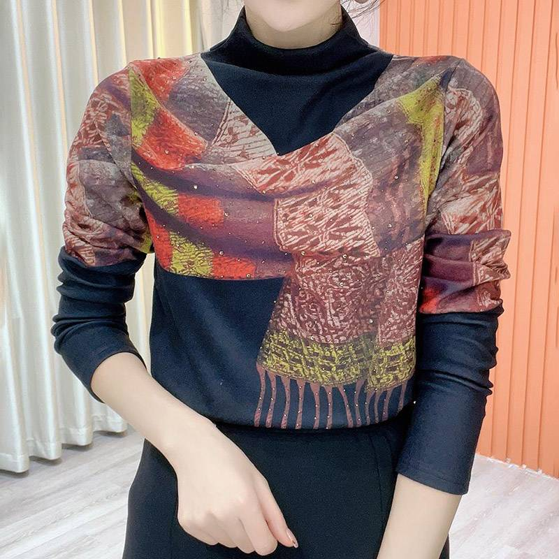 5分鐘前任選買1送1,設計感印花圍巾打底衫,時尚百搭,減齡遮肉顯瘦,內裡德絨保暖不紮膚, 每個色都好看! - 【買一送一】 二入組,NT$1098均價549/1件