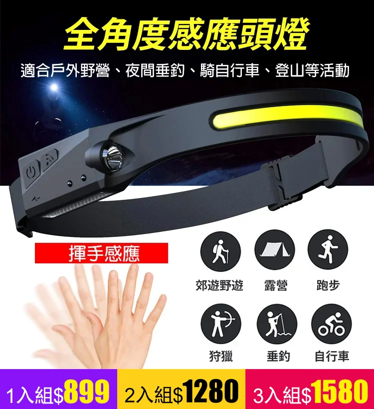 2分鐘前智慧感應式頭燈,3款照明方式!解放雙手照明好物! - 破盤嗨購:3入組 NT$1380