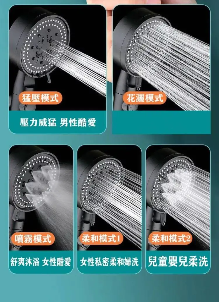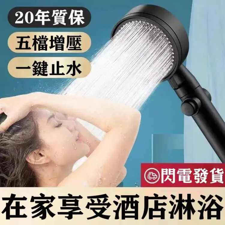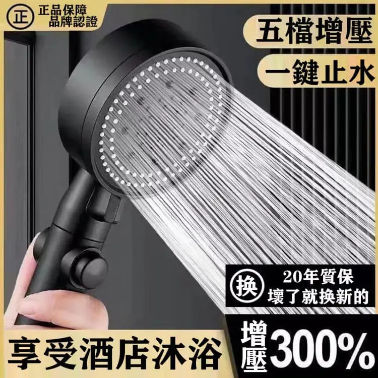 半小時前【熱銷10萬+】【黑武士花灑】升級款五檔增壓花灑,五檔調節,一鍵止水,強增壓,大出水,在家享受酒店淋!浴 - 【超夯團購!任選5件】僅需NT$1179 均價235/件
